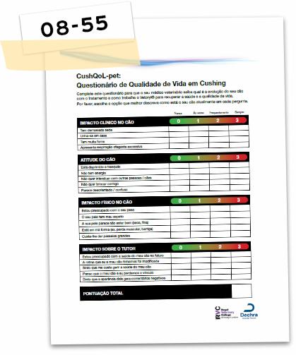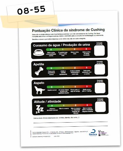 Uma vez que os sinais clínicos (sintomas) de Cushing são a chave para a monitorização, a pontuação clínica de Cushing foi desenvolvida para que seja fácil documentar e manter um registo dos sintomas mais importantes. Recomenda-se completar a pontuação antes de cada visita ao veterinário e partilhar os resultados com o seu veterinário.